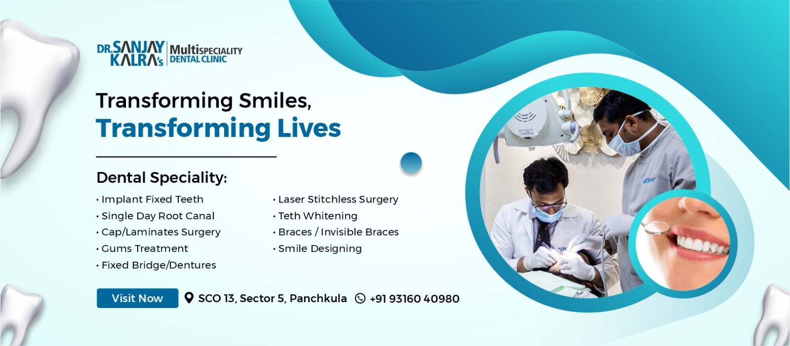 Dr. Sanjay Kalra's Multispeciality Dental Clinic is a trusted name in advanced dental care in Panchkula. With over 35 years of clinical excellence, we offer comprehensive services including cosmetic dentistry, dental implants, Invisalign, and full smile makeovers. Our experienced team uses the latest technology to provide personalized, painless, and result-oriented treatments in a patient-friendly environment.