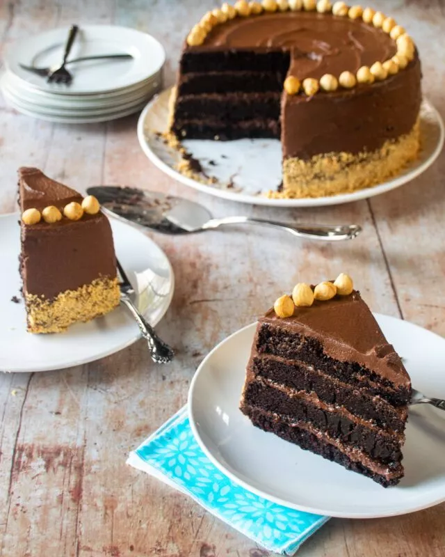 This delicious chocolate hazelnut cake is impressive with all four layers. It will make all your nutty chocolate lovers super happy.